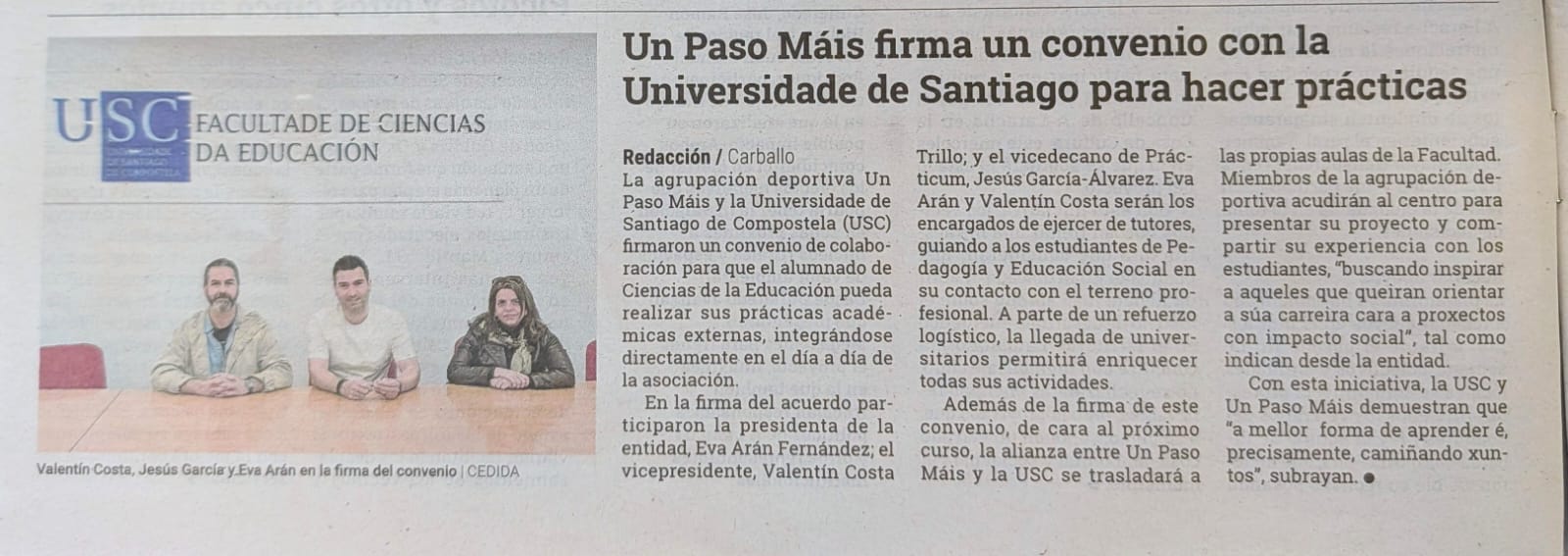 Un Paso Máis firma un convenio con la Universidade de Santiago para hacer prácticas